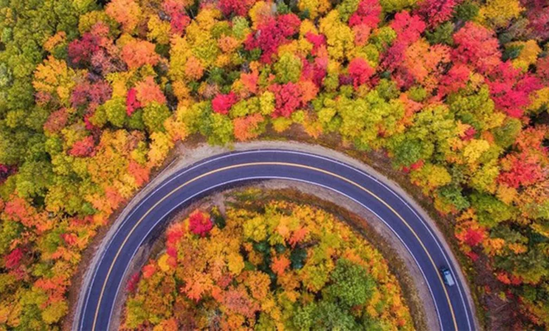 ذات این جاده کوهستانی و پیچ در پیچ، همراه با رنگهای تند پاییزی، قابهای دراماتیک خلق میکند — مناسب برای عکسهای منظره و درختمحور.