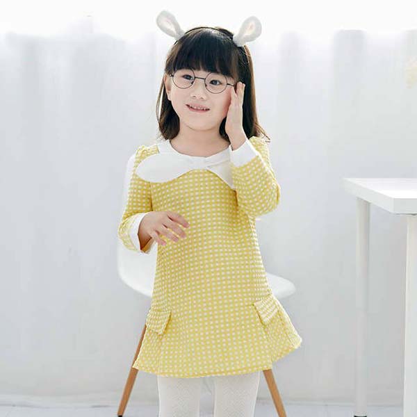 پیراهن دخترانه ترکیب پارچه ساده و چهارخانه