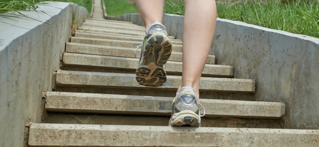 پلهنوردی کنید. بالا و پایین رفتن از پله (استپ) روی کل پایینتنه کار کرده و به بالا بردن حجم عضلانی این ناحیه کمک میکند. میتوانید برای این منظور از استپهای ورزشی استفاده کرده و خیلی ساده از آن بالا و پایین روید. برای بالا بردن شدت تمرین، دو دمبل در دستهایتان نگه دارید.