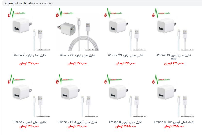 قیمت خرید انواع سیم، کابل شارژ، آداپتور، کلگی و شارژر اصلی شرکت اپل را می توانید به طور کامل در وب سایت امداد موبایل مشاهده کنید. توجه داشته باشید که کلیه محصولات امداد موبایل دارای گارانتی تست یک هفتهای هستند و در خصوص دسترسی آسان و پیمایش سریعتر کابران در وب سایت، تمام شارژرهای آیفون به تفکیک مدل همراه با قیمت و مشخصات فنی لیست شده اند تا بتوانید نسبت به خرید شارژر خود انتخاب درست و دقیقی داشته باشید. برای مشاهده قیمت ها اینجا را کلیک کنید.