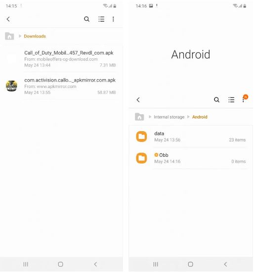 پس از نصب فایل APK بازی Call of Duty Mobile روی گوشی اندروید خود، به برنامه فایل منیجر بروید و فولدر اندروید در گوشی‌تان را پیدا کنید.