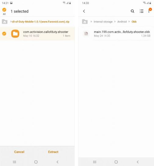حالا به دنبال فولدر OBB باشید و اگر آن را پیدا نکردید، یک فولدر با همین نام در فایل منیجر و فولدر اندروید بسازید. در ادامه فایل OBB را که برای بازی کالاف دیوتی دانلود کرده‌اید، از حالت فشرده خارج کرده و به دنبال فولدر «com.activision.callofduty.shooter» باشید.