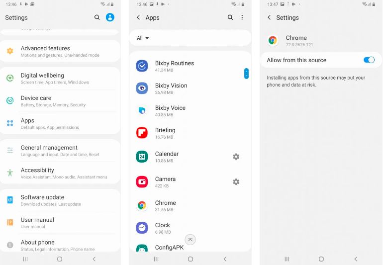 البته بجای این کار می‌توانید به تنظیمات، برنامه و کروم رفته و گزینه Allow from this source را فعال کنید تا امکان نصب اپ‌های خارج از اپ استور از طریق این برنامه فراهم شود.