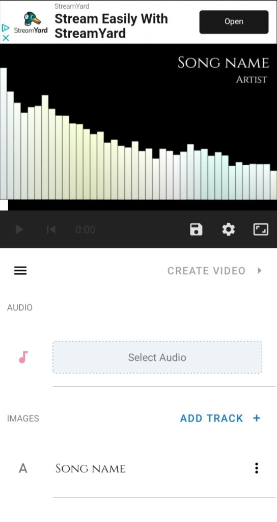 ۲. روی گزینه Select Audio در مرکز صفحه بزنید و در ادامه فایل آهنگ مورد نظر خود را انتخاب نمایید.