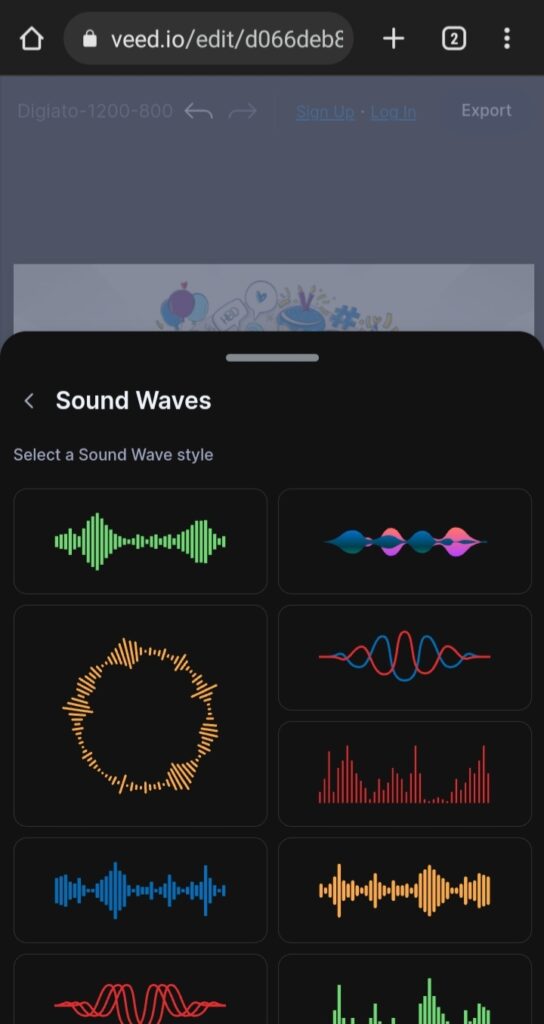 ۵. پس از به اتمام رسیدن فرایند آپلود تصویر یا ویدیو پسزمینه، باید قالب مورد نظر را برای اکولایزر انتخاب نمایید. در قسمت Sound Waves قالبهای متنوعی قرار گرفتهاند و با اسکرول به پایین میتوانید موارد بیشتری را مشاهده نمایید.